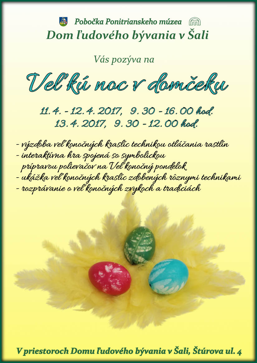 Výstava veľkonočných kraslíc spojená s ukážkou rôznych techník ich zdobenia.