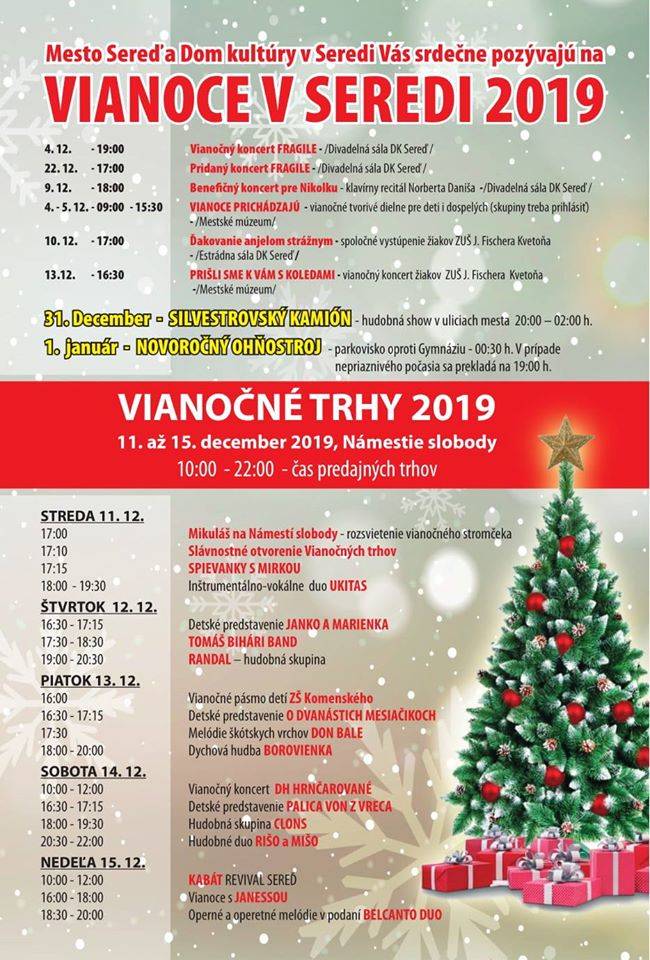 je už známy vianočný a silvestrovský program v Seredi, z ktorého si určite budete môcť vybrať to, čo je Vášmu srdcu blízke.